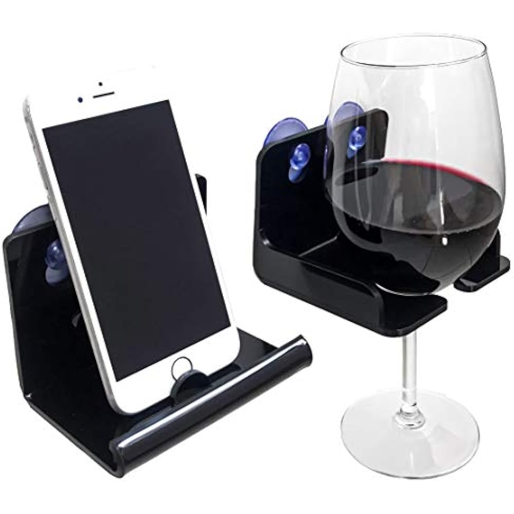 Rather than trying to balance the glass on the ledge of the tub, it allows you to.